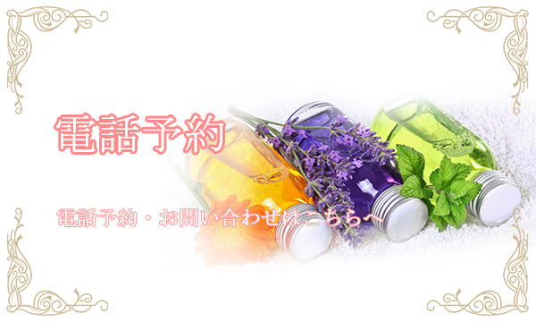 当店では、アロマオイルの効能と当店自慢のセラピストによるリンパマッサージの相乗効果による、癒しのひとときをお客様お一人お一人にお届けしております、自然で心やすらぐ優美な香りを、施術中はもちろんご帰宅お休みになってから翌日朝目覚めでまで楽しんで頂けます、どうぞゆっくりご堪能ください。